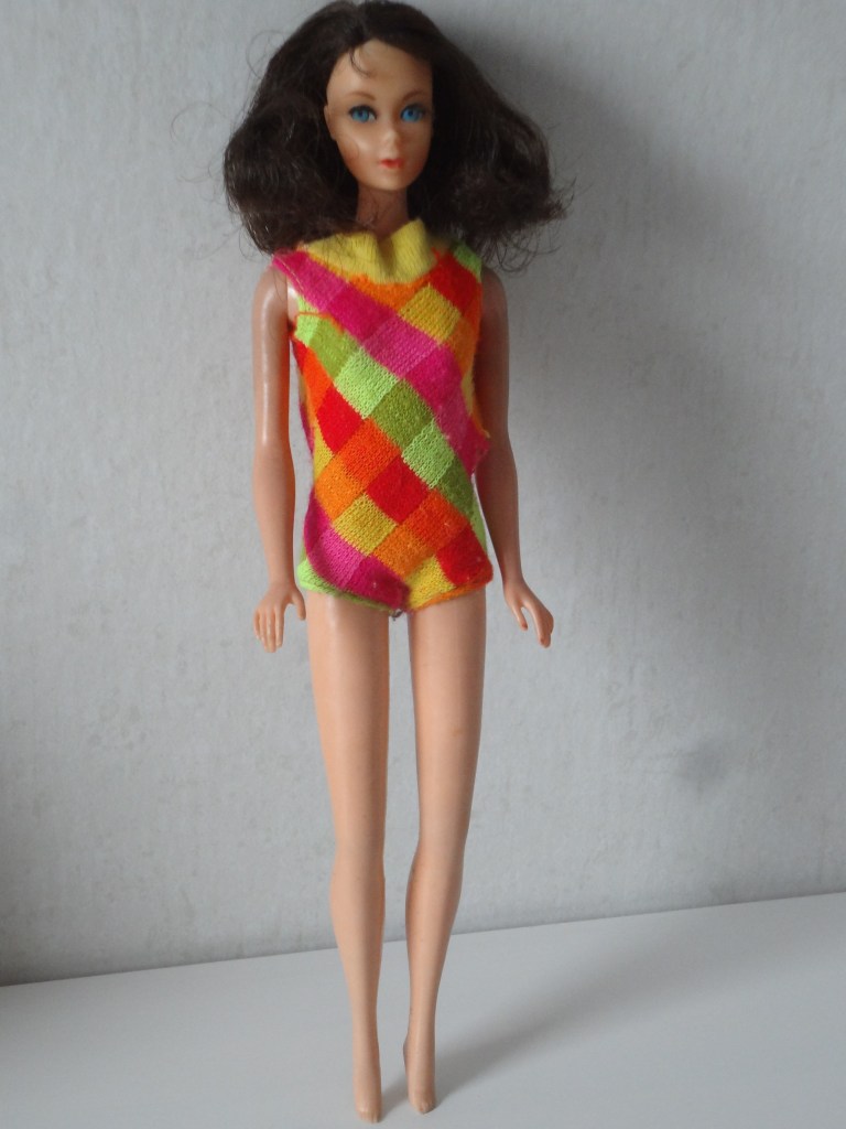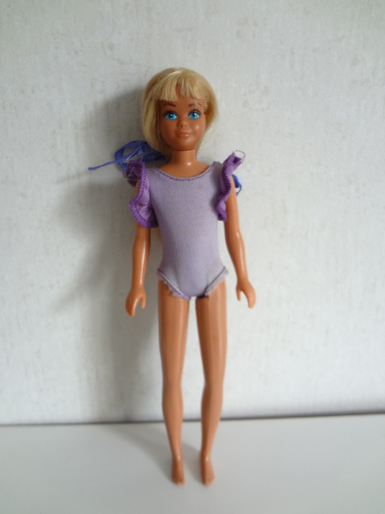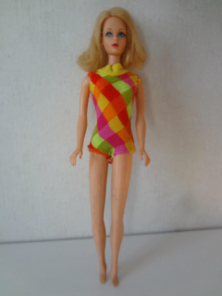 Living Skipper (Liv), 1969, Taiwan, också i originalbaddräkt. Jag fick henne i födelsedagspresent 1972 och det var kärlek vid första ögonkastet! Efter mycket letande på Tradera så har jag, hösten 2021, hittat en passande storasyster, en Dramatic New Living Barbie som är från samma period, den s.k. Eye Lash-eran. Hon kommer att få namnet Livvy.