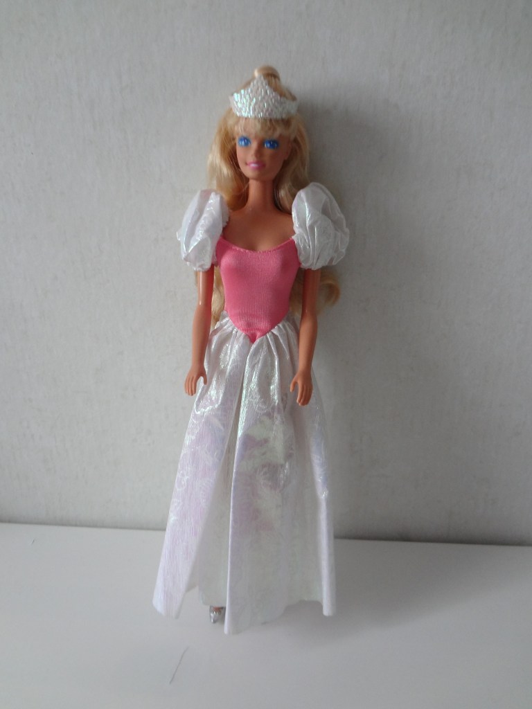 My First Princess (Princess), stämplad 1966, Malaysia, men från -89, anländer från Dockbutiken i mars -24 och blev direkt den nyaste Barbie-dockan i min samling! Hon är inte äkta prinsessa i min dockvärld, utan utklädd, och eg. för ny för mig, men jag såg genast släktskapet med Queenie, så jag kunde inte motstå henne!