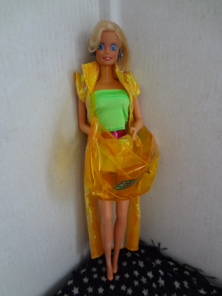 På M s h, vid samma tillfälle hittade jag ännu en The Rockers Barbie! Osäker på om hon är -85 eller -86 års upplaga. Hon är stämplad – 66, Philippines, och hon får heta Rose och vara trillingsyster med Roxanne och Rosanna.