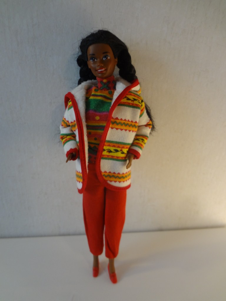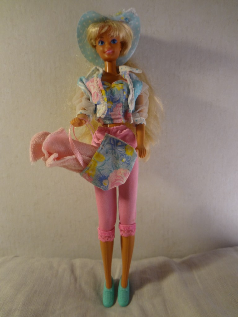 Jättesöt Barbie (Layla?) som jag köpte från Röda korset, Sundsvall, ett par månader innan butiken lägger ner. Hon är stämplad Malaysia, 1966, men är nog från tidigt 1990-tal. Oklart vilken modell. Mest lik Totally Hair eller Hollywood Hair, men i så fall är håret klippt. Jag får luska vidare på den…