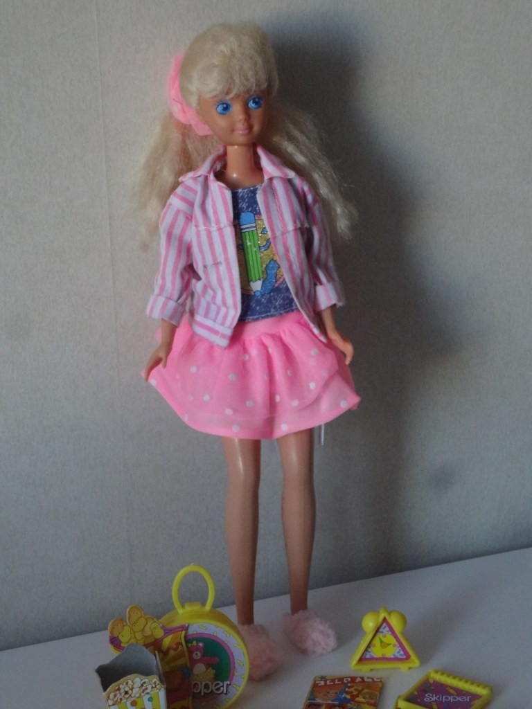 Skipper ? (Queenie), stämplad 1987, Kina. Är troligtvis en Homecoming Queen. Hon var länge min nyaste Skipper, och hon hittade hem till mig från Erikshjälpen 2017 eller 2018, tror jag det var. Hon får vara lillasyster till Princess. I juni 2025 har jag sytt en klänning som ska vara så lik hennes originalklänning som möjligt.
